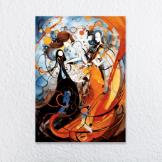 Прекрасен приказ на шише вино и чаша, обоени со жива палета која внесува динамика и топлина во секој..