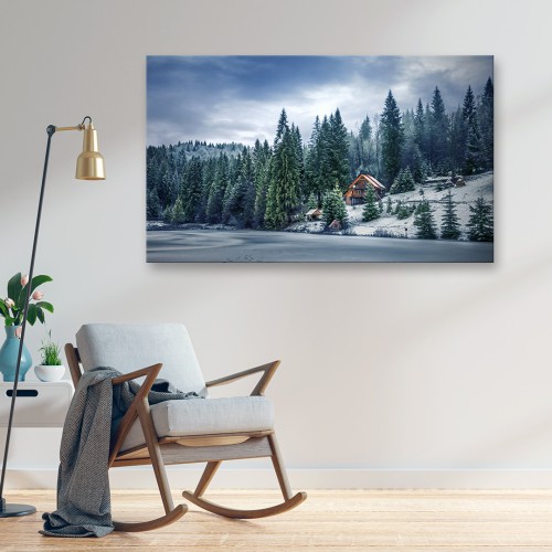 Канвас слика од прекрасна локација за зимски одмор во дрвена куќичка која е исполнета со љубов од вашите најблиски.