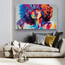 Афро американски стил претставен преку оваа разнобојна слика која отсликува девојка нацртана со комб..